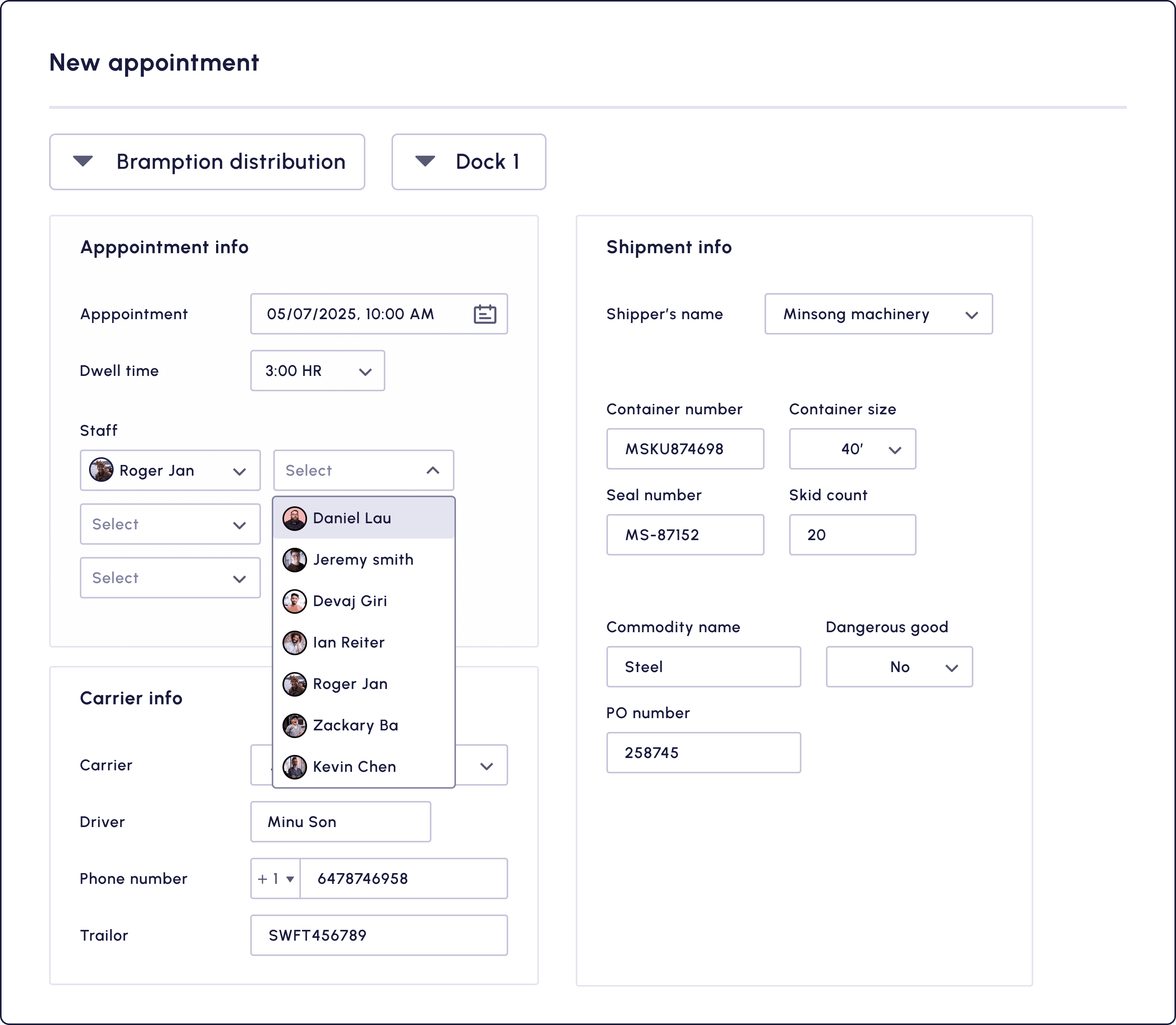 Assign staff to specific docks and monitor their schedules to ensure efficient dock utilization and staffing.