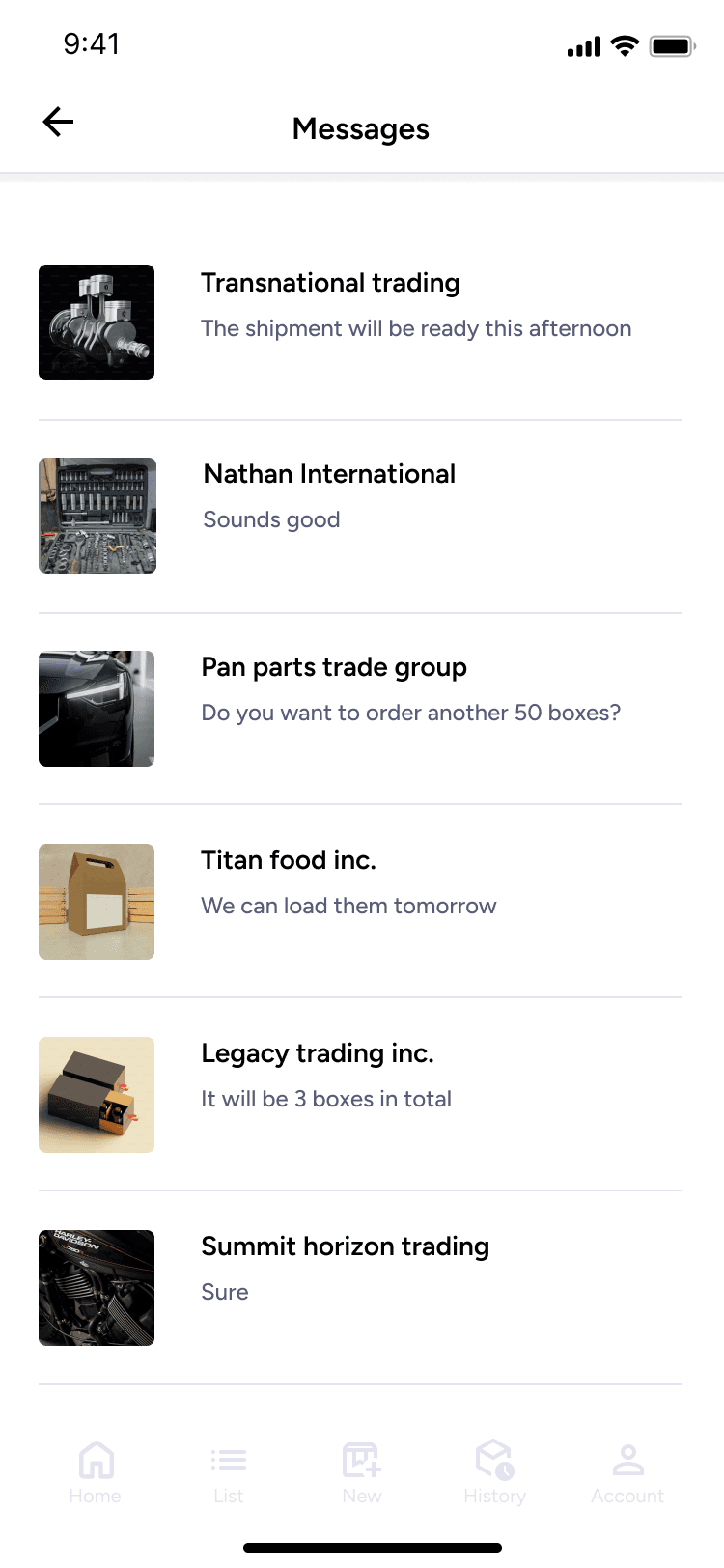 Other features : Vendor’s information, Login & create an account, History, add new shipments, Messages